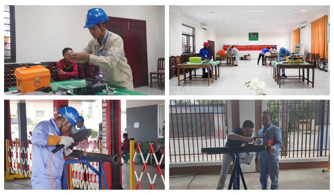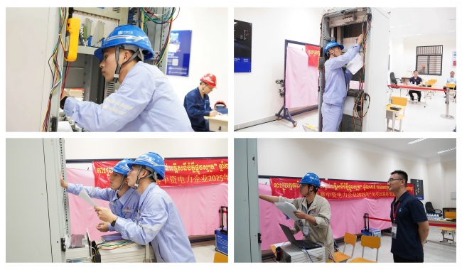 今年7月,学校收到企业邀请后,选派由我校具有扎实的理论功底、丰富的实践经验以及海外学习工作经历的教师组成的团队赴柬协助企业组织和实施本次大赛。教师团队中有我校全国劳动模范吴战宇博士、企业引进专家杨超博士、蒋亮博士和技能大赛资深裁判罗乔博士,为高质量完成本次大赛奠定了坚实基础。在大赛设计上,我校教师团队根据柬埔寨电力行业升级与可再生能源发展任务,为大赛设计了理论测试、实操考核与综合素养三个模块,全面考核选手专业能力与岗位胜任力。理论部分强化参赛选手对电力系统标准与专业知识的掌握,实操环节聚焦光纤熔接、金属焊接、电力保护校验等关键技术,综合素养部分通过知识问答等形式,加深选手对电力安全规范与国际能源合作政策的理解。我校教师团队设计的竞赛考核方案精准考验了选手的技术技能功底,直面柬埔寨电力行业“技能人才缺口大、技术协同程度低”的痛点,助力中资电力企业以赛促训。