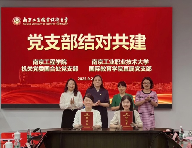 9月29日,我校国际教育学院直属党支部与南京工程学院机关党委国合处党支部围绕“党建引领业务深度融合”主题,共同举办党建共建交流活动。此次活动旨在通过组织共建、资源共享、业务共促,推动两校在国际化教育领域实现党建与业务的双向赋能、协同发展。南京工程学院国合处党支部书记蒋静,南京工业职业技术大学党委常委、副校长魏萍参加活动。