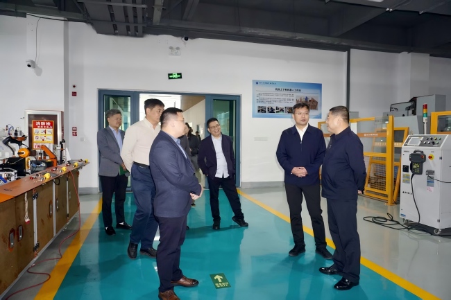 会前,崔新明陪同来宾参观了黄炎培职教思想展览馆和国家产教融合示范基地。