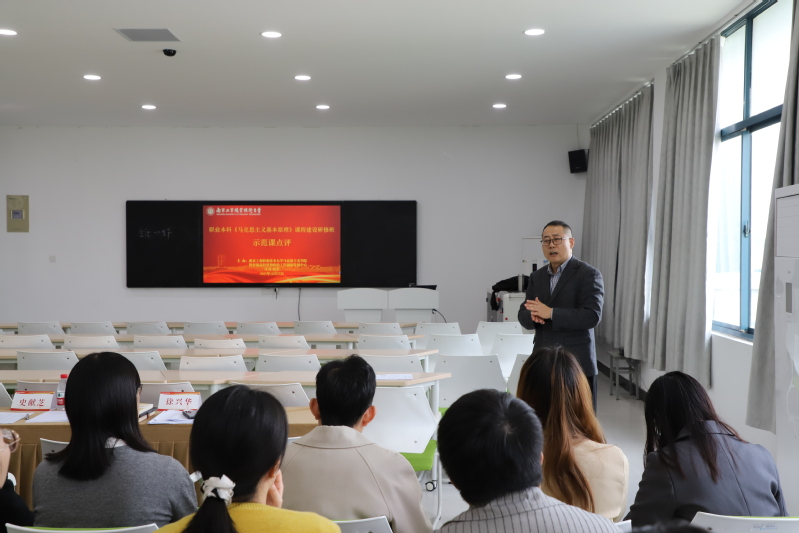 教学展示环节,我校马克思主义学院郝立杰教授讲授了一堂《马克思主义基本原理》公开课。他紧扣“社会基本矛盾及其运动规律”主题,运用典型案例,对社会基本矛盾的核心概念、矛盾运动及其规律进行深入剖析,展现了职业本科思政课教学的创新探索,获得现场热烈反响。课后,南京邮电大学马克思主义学院院长史献芝教授,结合自身教学实践与研究,对该公开课进行了精彩点评,他充分肯定了本堂课的精心构思与有效组织,并就如何进一步推动职业本科“原理”课教学高质量发展提出了建设性建议。