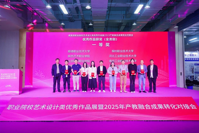 11月14日至16日,由教育部职业院校艺术设计类专业教学指导委员会主办的“全国职业院校艺术设计类优秀作品展暨2025年产教融合成果转化对接会”在广州琶洲灵感创新展馆成功举办。我校艺术设计学院院长孔伟率七人团队赴穗参展交流,成果丰硕。