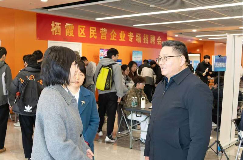 11月26日,由栖霞区委统战部与我校统战部共同主办,栖霞区工商联(总商会)、区人社局、我校招生就业处、校团委联合承办的栖霞区2025年民营企业专场招聘会在我校双创大楼顺利举行。校党委副书记浦黄忠,党委常委、副校长高宏彦,栖霞区委常委、统战部部长章晶,区工商联党组成员、副主席彭中华等参加活动。