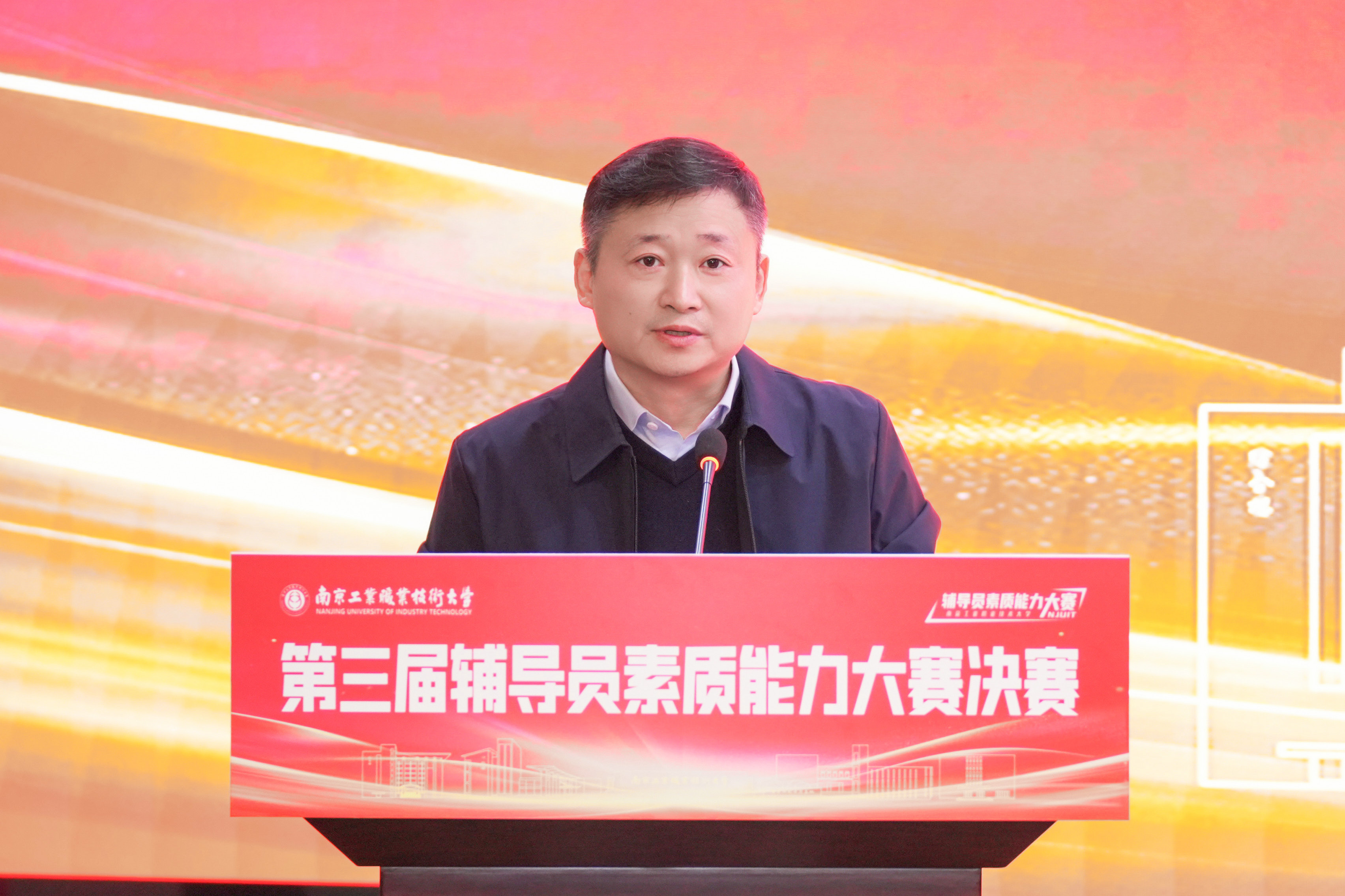 决赛前,高宏彦向大家致辞,他首先向晋级选手表示祝贺,对评委嘉宾表示欢迎。他指出,我校辅导员是一支“阅历”与“青春”相伴的队伍,具有良好的思政业务素养、灵活应变能力和深厚育人情怀,这支队伍为南工高质量发展打牢了育人根基、贡献了重要力量。他希望全体辅导员以比赛为契机,互学互鉴、更新知识,努力在三个方面提升能力:一要筑牢信仰之基,做学生思想的“引路人”;二要锤炼专业之本,做学生成才的“摆渡人”;三要永葆仁爱之心,做学生成长的“守护者”。