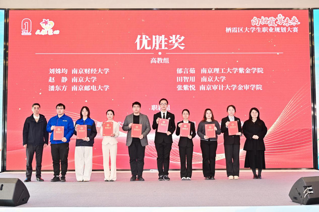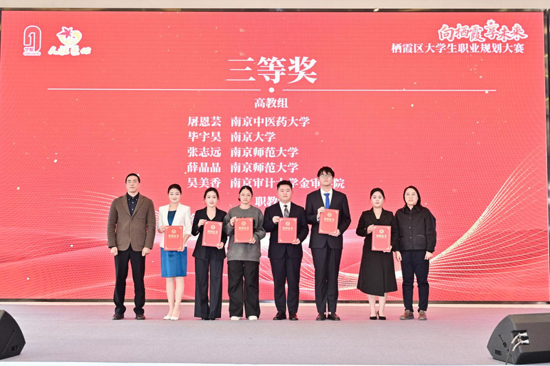 12月16日下午,由南京市人力资源和社会保障局、栖霞区人民政府联合举办的“向栖霞·享未来”大学生职业规划大赛颁奖仪式在紫东生态会议中心隆重举行。我校学生在本次比赛中斩获多项荣誉:航空工程学院陶仕逞荣获一等奖,经济管理学院徐莹钰获得三等奖,机械工程学院蔡鹏程获得优胜奖。