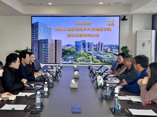 为深化产教融合,精准了解外贸行业人才需求,促进毕业生高质量就业,12月23日,商务贸易学院党委书记邢益军、院长阮晓文、党委副书记王静、国贸系主任竺杏月一行赴苏豪控股集团常州有限公司开展访企拓岗与交流调研活动。苏豪控股集团常州有限公司总经理马文亮、副总经理邓若冰、办公室副主任应嘉凌、人力资源部李佳参加座谈并热情接待。