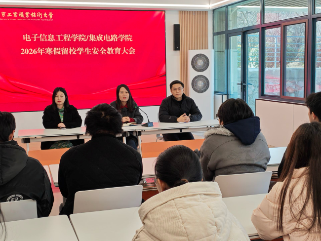 为切实做好寒假期间留校学生的安全教育与管理工作,全面提升学生的安全防范意识和自我管理能力,确保留校学生度过安全、充实的假期,1月13日,电子信息工程学院/集成电路学院在一站式学生社区匠心讲堂召开寒假留校学生安全教育大会。学院党委副书记蒋丽洁、辅导员代表及全体寒假留校学生参加会议。