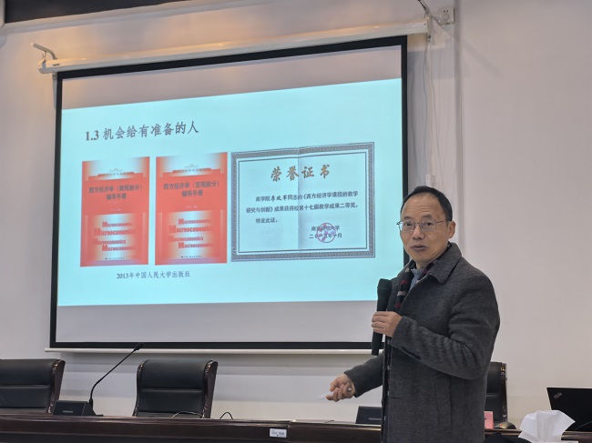 1月26日下午,南京师范大学教授、硕士生导师、师德先进个人、江苏省中青年骨干教师李政军教授以《课程建设的经验与反思》为主题,系统分享了从个人深耕到团队协作打造高水平课程的经验,从教育本质出发,探讨了在技术快速发展的背景下如何坚守课程教学的质量底线,为学院课程及教材建设提供了宝贵的实践参考。