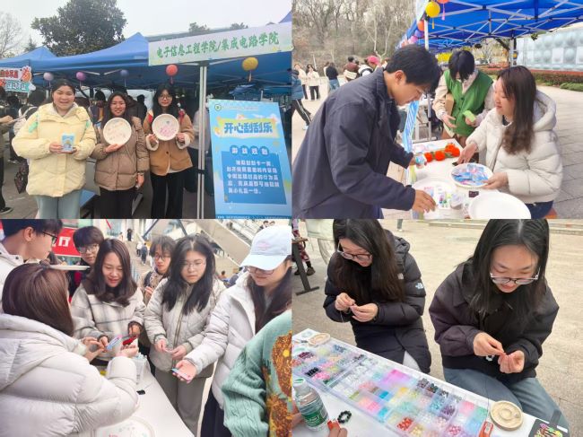 3月20日,电子信息工程学院/集成电路学院在三四食堂广场举办“‘芯’光灿烂,向阳而生”春日心理健康活动。本次活动将心理关怀与创意手作相结合,旨在帮助同学们在繁忙的学业之余舒缓压力、探索自我。活动吸引了众多学子驻足参与,共赴一场温暖心灵的“芯”动之约。