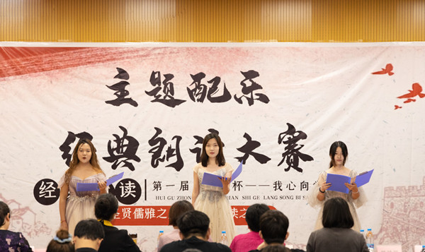 此项活动于3月中旬启动,得到了同学们的热情响应,前期有五百多名同学参与了海选与预赛。决赛场上,同学们仪装儒雅、饱含激情地朗诵了《祖国啊,我亲爱的祖国》《少年中国说》《可爱的中国》《红船,从南湖启航》《我的中国梦》等诗文。深情壮美的作品,动人心弦的音律,和着青年学生的青春活力,一次次打动在场的众多师生。公共基础课部党总支书记陈桂兰赞誉道,同学们把一曲曲颂歌唱给亲爱的祖国亲爱的党,既展现了“我心向党”的赤诚,也展现了朗诵艺术的魅力。她对同学们踊跃参与健康博雅、进步向上的校园文化建设给予热情称赞,并希望同学们把从优秀红色经典文化中汲取的营养和力量带到学习和工作中去,早日成为国家的栋梁之材!
