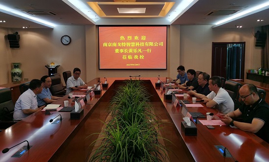 6月8日上午,南京南戈特智慧科技有限公司董事长黄乐凡、总经理殷润民等一行五人来我校,就校企合作做进一步交流。我校党委书记吴学敏及科技处、发展合作处、机械工程学院等相关部门负责同志接待了来宾。