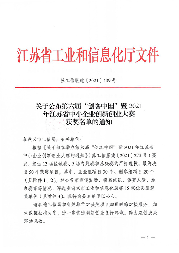 近日,第六届“创客中国”暨2021年江苏省中小企业创新创业大赛顺利落下帷幕,江苏省工业和信息化厅综合各市宣传发动、报名组织、参赛人数、承办赛事等情况,评选了大赛优秀组织奖,我校大学科技园运营公司——南京南工科技园管理有限公司名列其中。