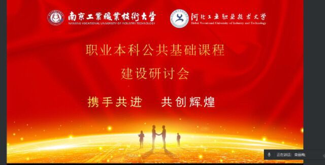 3月29日下午,我校公共基础课部与河北工业职业技术大学基础教学部开展了职业本科公共基础课程建设研讨会。河北工业职业技术大学基础教学部主任郑瑞芝、副主任刘娟音、数学教研室主任李娟、英语教研室主任栾丽梅,及我校公共基础课部主任金跃强、副主任江颖、大学英语教研室主任史其慧、大学数学教研室副主任王玲参加了在线研讨会。双方围绕职业本科数学、英语学科的课程体系设置,师资队伍建设、教材建设、在线资源假设、科研工作、学生升学与考级等方面开展了交流讨论。