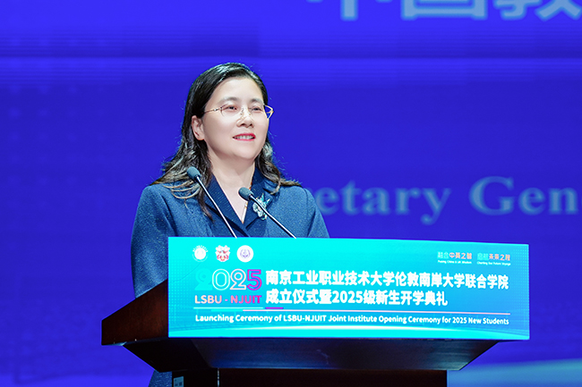 赵彦志在致辞中表示,南京工业职业技术大学与伦敦南岸大学的合作,是中外合作办学高质量发展的生动体现。中外合作办学联席会自2014年成立以来,在教育部指导下已汇聚192所本科及以上合作办学院校,形成推动教育资源共享、保障办学质量的重要平台。他指出,在新时代背景下,中外合作办学正从“引进来”迈向“共建共赢”,不仅是教育资源的双向流动,更是教育制度创新、文化互鉴与国际人才培养的深度融合。南京工业职业技术大学作为职业本科教育的先行者,与在应用型教育领域享有盛誉的伦敦南岸大学强强联合,可谓相得益彰。最后,他寄语联合学院师生以开放的胸怀和创新的精神,共同打造新时代中外合作办学的“江苏样本”。