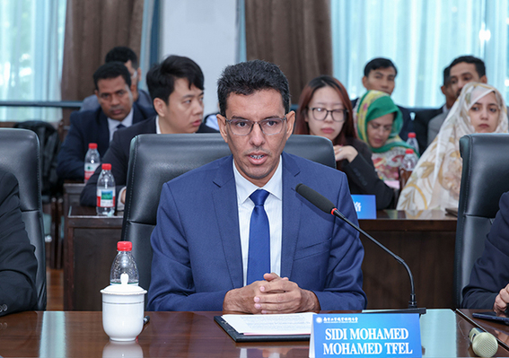 西迪·特费尔(Sidi Tfel)先生代表非洲政府代表团对我校的精心安排表示感谢。他表示,毛里塔尼亚与中国的友好合作关系持续深化,中国长期为毛里塔尼亚经济社会发展提供支持。他介绍了毛里塔尼亚国家职业培训战略及分层体系,强调该国高度重视职业技术培训,将其视为推动经济社会进步的核心动力、应对贫困与失业问题的有效路径,以及助力青年实现就业的重要支柱。他期待以此次交流为契机,推动毛中两国在职业培训领域的合作进一步走深走实,让合作成果切实惠及两国人民。