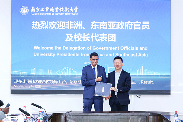 谢永华代表学校向来宾致欢迎辞。他介绍了学校办学历史、专业特色及对外合作交流情况。近年来,学校通过“引进来”与“走出去”双向发力,在国际教育合作领域成果丰硕。他重点介绍了面向非洲、东盟等区域的特色合作项目。学校在柬埔寨建成中国职业教育第一所海外应用技术大学—柬华应用科技大学,在赞比亚建成中国—赞比亚职业技术学院南工机电分院,在埃塞俄比亚建成新能源汽车职业培训基地,牵头成立中非职教合作联盟、江苏-南非职业院校校长联盟,实施“留学江苏政府奖学金南非专项奖项目”,举办江苏-东盟教育合作交流会,常态化开展“中文+职业技能”培训,主办2025世界职业院校技能大赛东南亚赛区,深化与非洲和东南亚国家的务实合作。他表示,期待与非洲、东南亚各国教育部门和院校拓展合作领域,深化课程开发、师生交流、校际互访、科研合作、学分互认等领域合作。