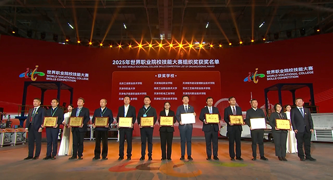 柬华应用科技大学成为唯一有2支队伍进入全球总决赛的学校。同时,因为在东南亚赛区比赛组织中的卓越表现,我校获2025年世界职业院校技能大赛“优秀组织奖”,学校党委书记谢永华上台领奖。