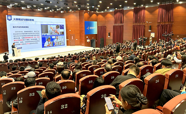 今年9月,受教育部委托,我校指导柬华应用科技大学成功举办2025年世界职业院校技能大赛东南亚赛区比赛,设置了智能装备应用、新一代信息技术和商贸等3个赛道,来自柬埔寨、马来西亚、泰国、印度尼西亚和菲律宾等东南亚国家60支队伍201名选手同台竞技。大赛在柬埔寨、马来西亚等东南亚国家赢得广泛关注和赞誉。