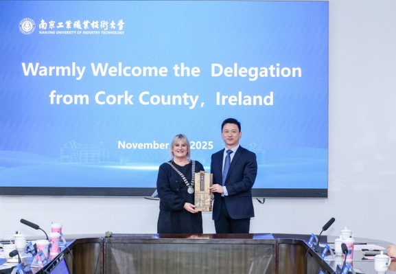 谢永华介绍了学校办学历史、专业特色及与英国、美国、澳大利亚等国的交流与合作。2025年,学校获批全国首家公办职教本科层次中外合作办学机构—南京工业职业技术大学伦敦南岸大学联合学院,首批200余名学生在读。我校连续四年举办“中美职教院校校长对话”活动,吸引中美100余所院校、近千名代表参加。学校与澳大利亚昆士兰科技大学等院校开展学分互认和师生交流等活动。近年来,学校积极拓展与爱尔兰的合作交流,前期与爱尔兰东南理工大学围绕师生交流、校际互访等达成合作意向,期待未来与爱尔兰科克郡搭建更多交流平台,拓展和深化我校与爱尔兰教育领域合作。
