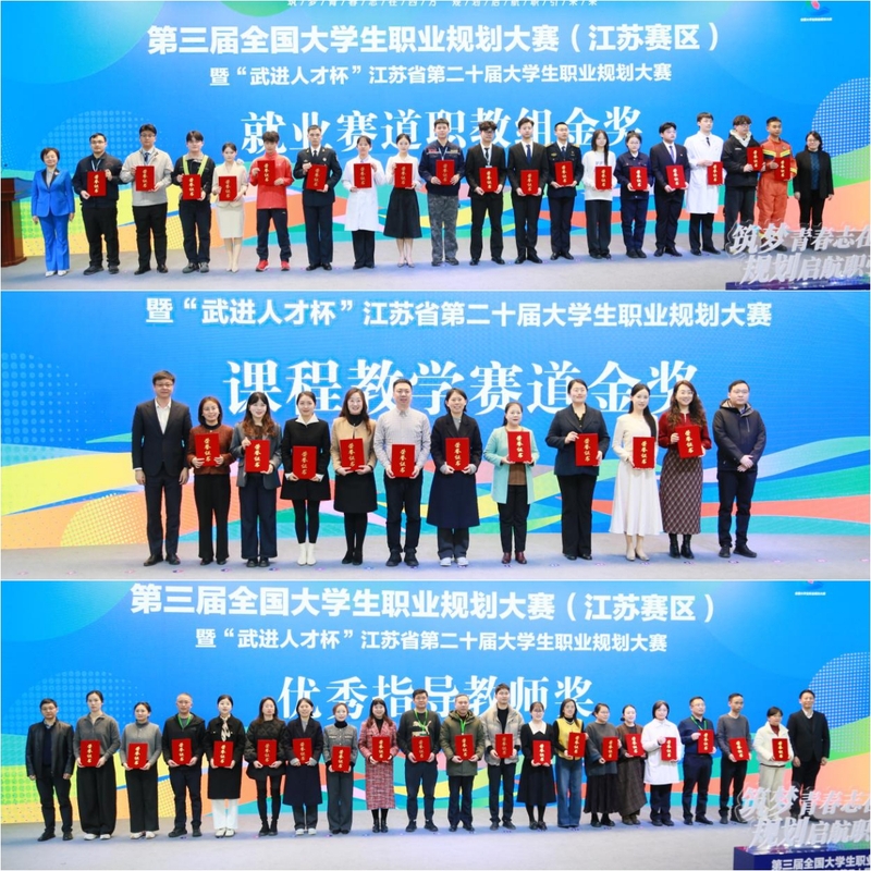 自大赛启动以来,学校高度重视、精心组织,建立多部门协同联动机制,形成高效的赛事保障体系。在校内选拔阶段,通过全方位组织动员,全体在校生参与率突破99%。本次大赛,我校参赛师生共斩获6项金奖、2项银奖、1项铜奖。其中,在课程教学赛道职教组决赛中,我校职业发展与就业指导教研室教师团队以全省第一名的成绩斩获金奖;电气工程学院陈骁宇、计算机与软件学院甘玉涛获成长赛道职教组金奖;机械工程学院蔡鹏程、电气工程学院崔志浩、航空工程学院陶仕逞获就业赛道职教组金奖;机械工程学院陈奕蓓、航空工程学院陈思泉获成长赛道职教组银奖;经济管理学院徐莹钰获就业赛道职教组铜奖。何宇欣、吴佳男、冯欣、李晓雯、熊强5位老师获“优秀指导教师奖”。