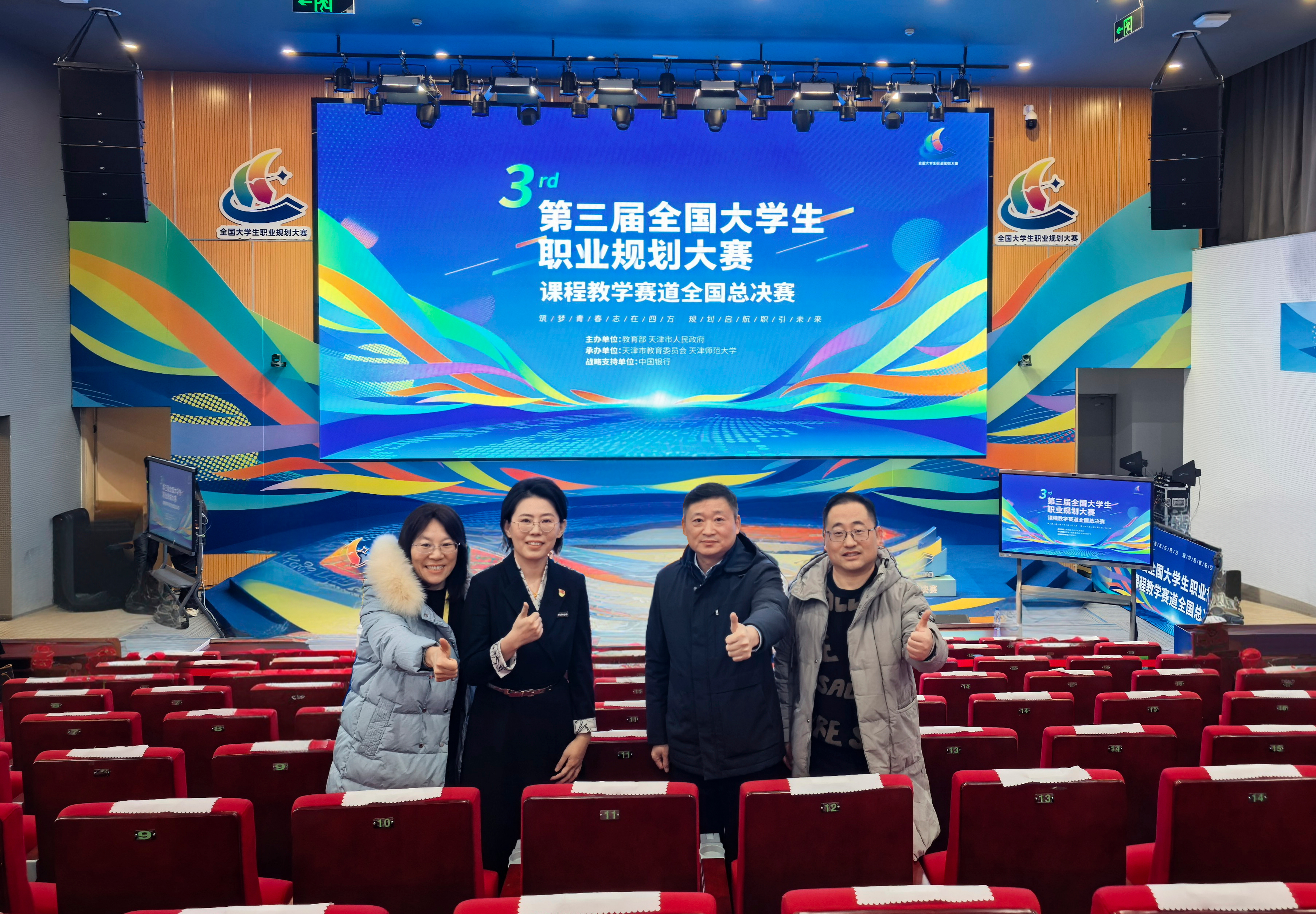 1月22日至23日,第三届全国大学生职业规划大赛课程教学赛道全国总决赛及同期活动在天津师范大学隆重举行。我校职业发展与就业指导教研室教师团队凭借扎实的课程建设功底、精湛的教学展示水平,以全国职教赛道总分第一名的优异成绩,斩获全国金奖(全国职教赛道8名金奖)。
