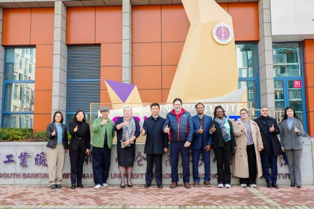 3月12日,英国伦敦南岸大学副校长斯图亚特・班纳曼率领教务长曼迪・梅德门特、国际事务负责人艾萨塔・埃德蒙森、副教务长拉维・桑达拉詹、质量保障与提升顾问卡尔佩什・克赫利亚等一行9人到访我校,围绕两校合作办学深化发展、新增专业申报等核心事宜开展深度交流洽谈。我校党委书记谢永华,党委常委、副校长魏萍热情接待代表团,学校教务处、计划财务处、国际合作与交流处等职能部门负责人,以及机械工程学院、电气工程学院、电子信息工程/集成电路学院、交通工程学院、计算机与软件学院、伦敦南岸学院等教学单位主要负责人和专业带头人参加会议。会议由魏萍主持。