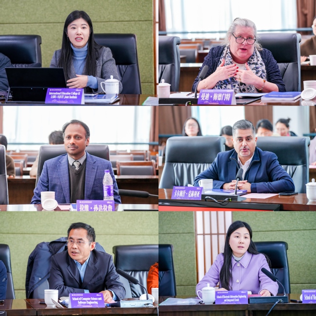 南京工业职业技术大学伦敦南岸大学联合学院联合管理委员会第一次会议同期举行。国际教育学院、伦敦南岸学院直属党支部书记、院长张海宁,伦敦南岸大学教务长曼迪・梅德门特,副教务长拉维・桑达拉詹,质量保障与提升顾问卡尔佩什・克赫利亚,计算机与软件学院院长胡光永,电子信息工程学院/集成电路学院党委书记、院长杨燕在会上进行了交流发言。张海宁全面汇报了伦敦南岸学院获批成立以来的整体运行情况,详细介绍了学院的建设成果与发展规划。曼迪・梅德门特、拉维・桑达拉詹、卡尔佩什・克赫利亚分别从专业建设、协同工作进展、质量保障与标准衔接等方面分享英方工作成果,并对新增专业申报提出专业建议。胡光永、杨燕则分别介绍了人工智能、电子信息工程技术专业的办学基础、建设成效、产教融合模式及发展规划。