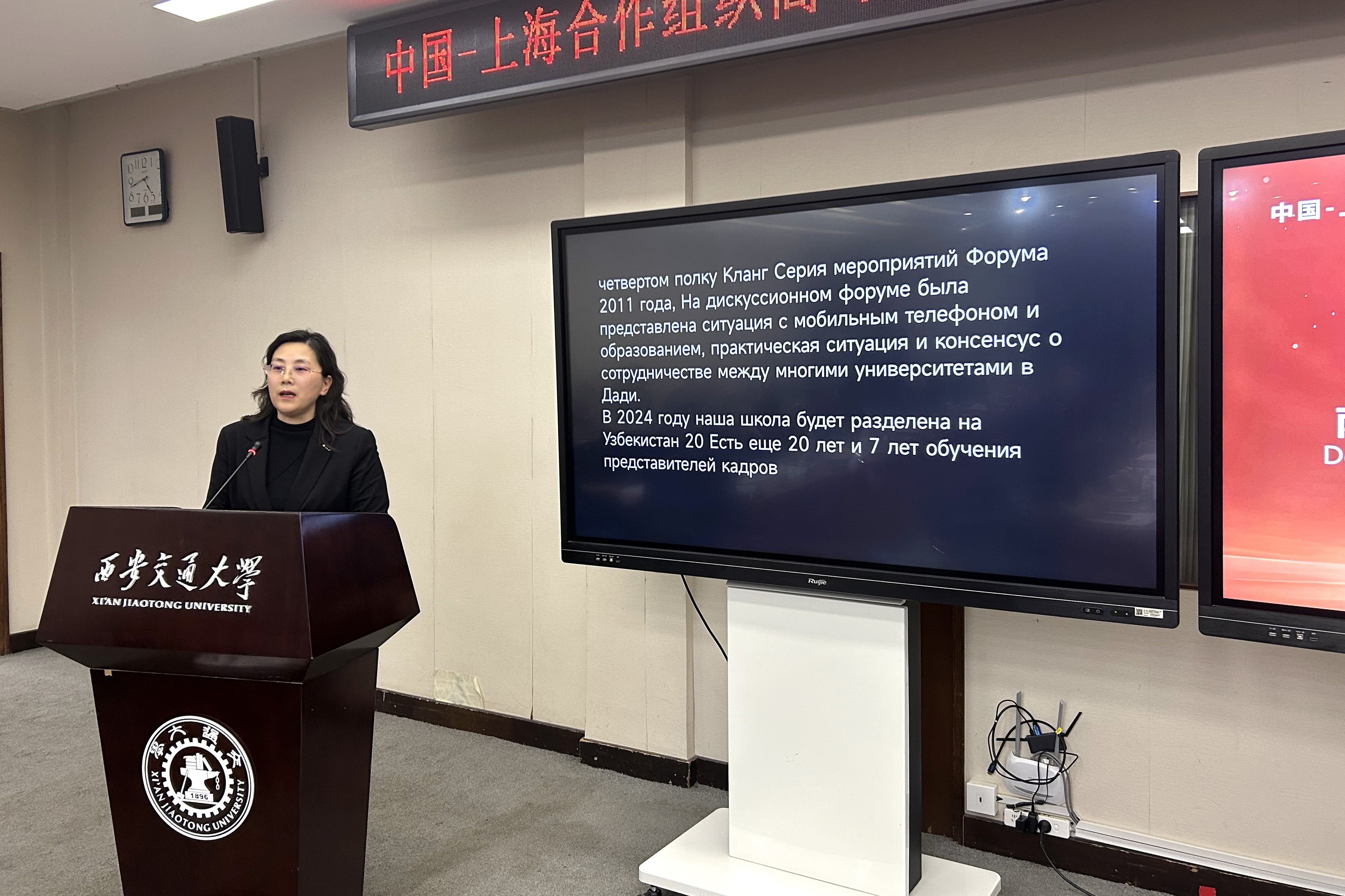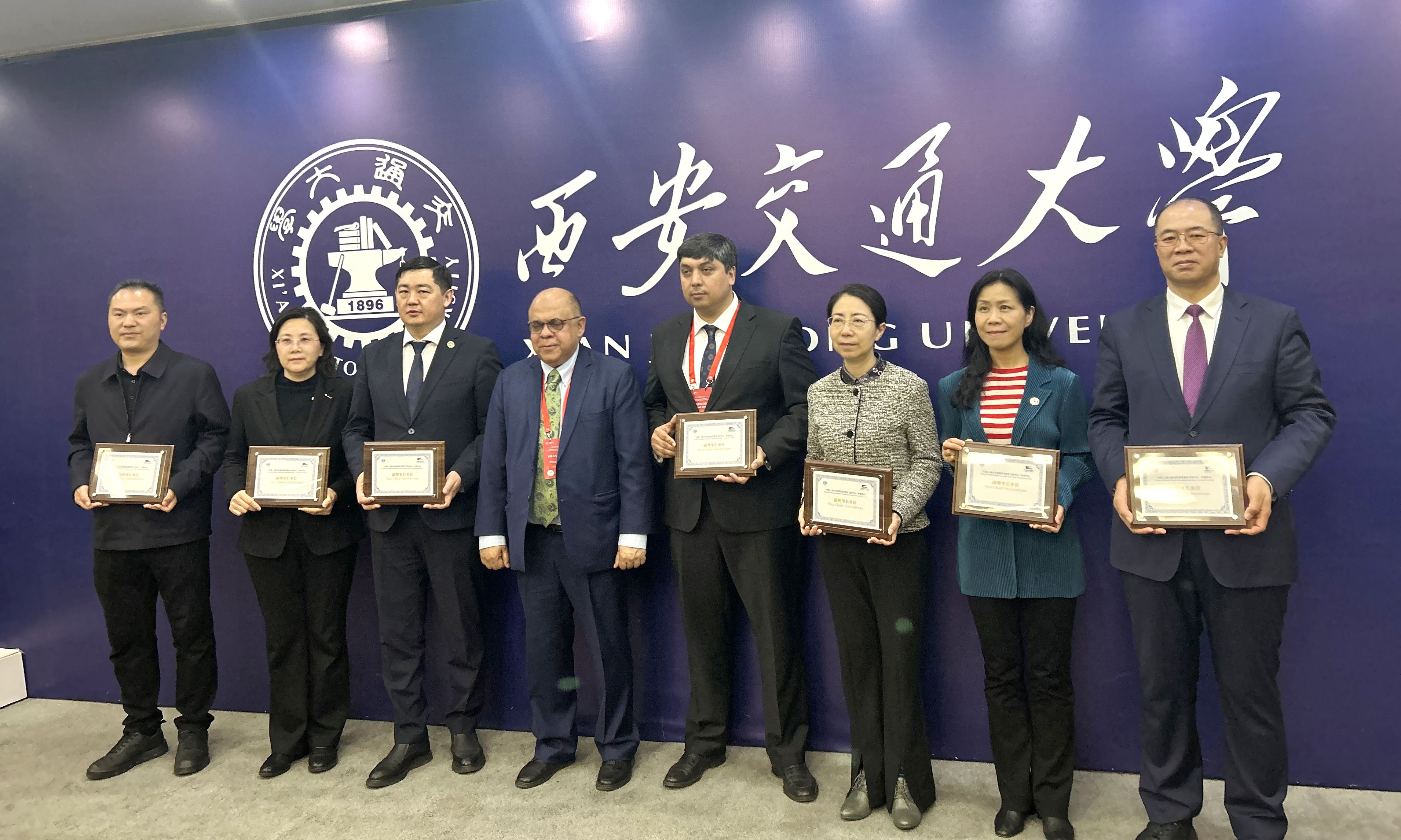 4月8日,西安交通大学建校130周年暨西迁70周年“中国特色、世界一流大学高质量发展大会”在西安举行。作为校庆系列活动之一,中国上海合作组织高等教育合作中心—中国中亚中心(以下简称中国中亚中心)理事会启动仪式在西安交通大学圆满举行。上海合作组织秘书处副秘书长索海尔·汗(Sohail Khan)、西安交通大学党委常委、副校长单智伟等领导出席启动仪式并讲话,中国中亚中心秘书长王文主持启动仪式。索海尔·汗为副理事长单位授牌,我校党委常委、副校长魏萍受邀出席活动并代表学校领牌,同时作专题分享。
