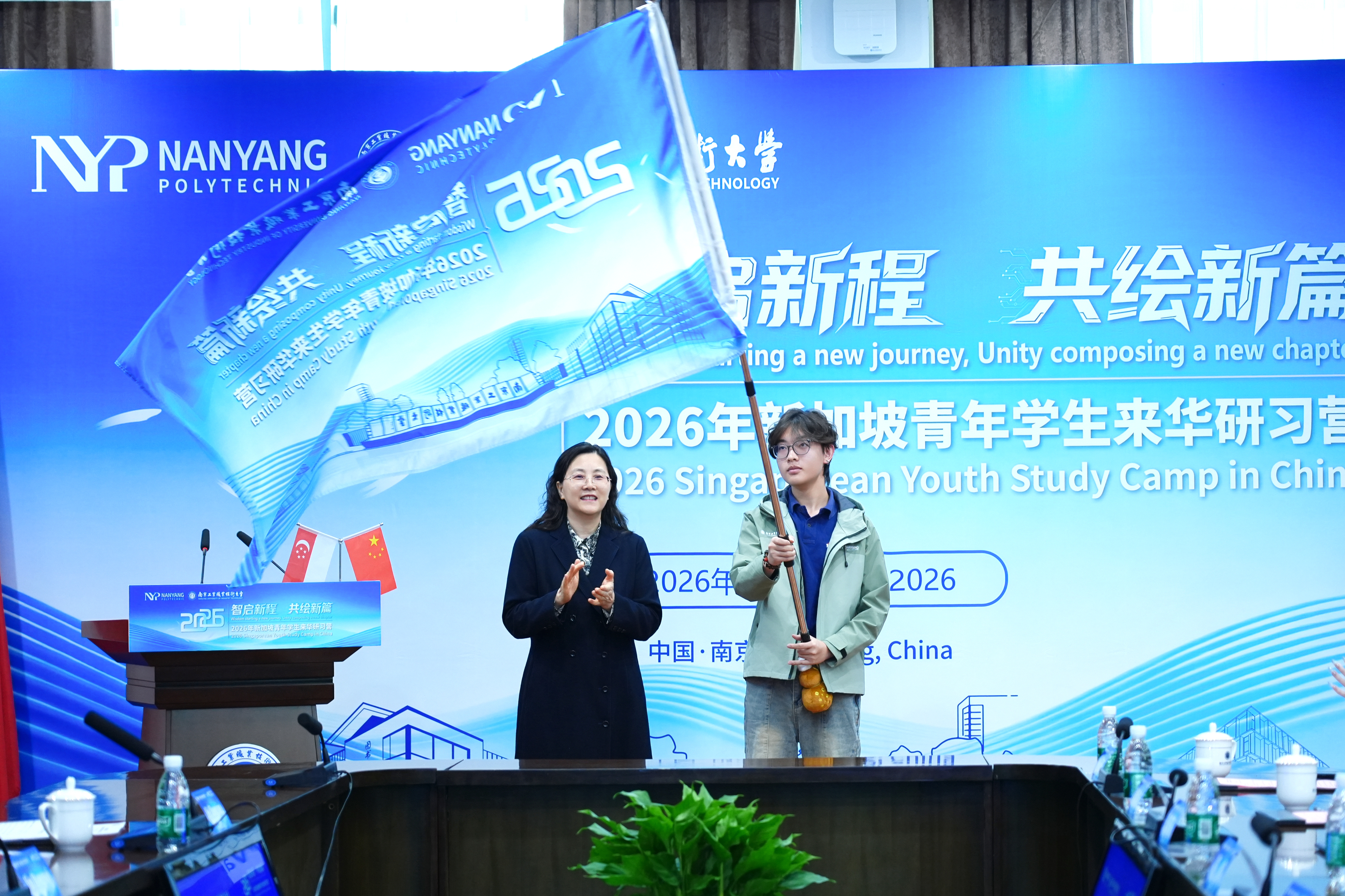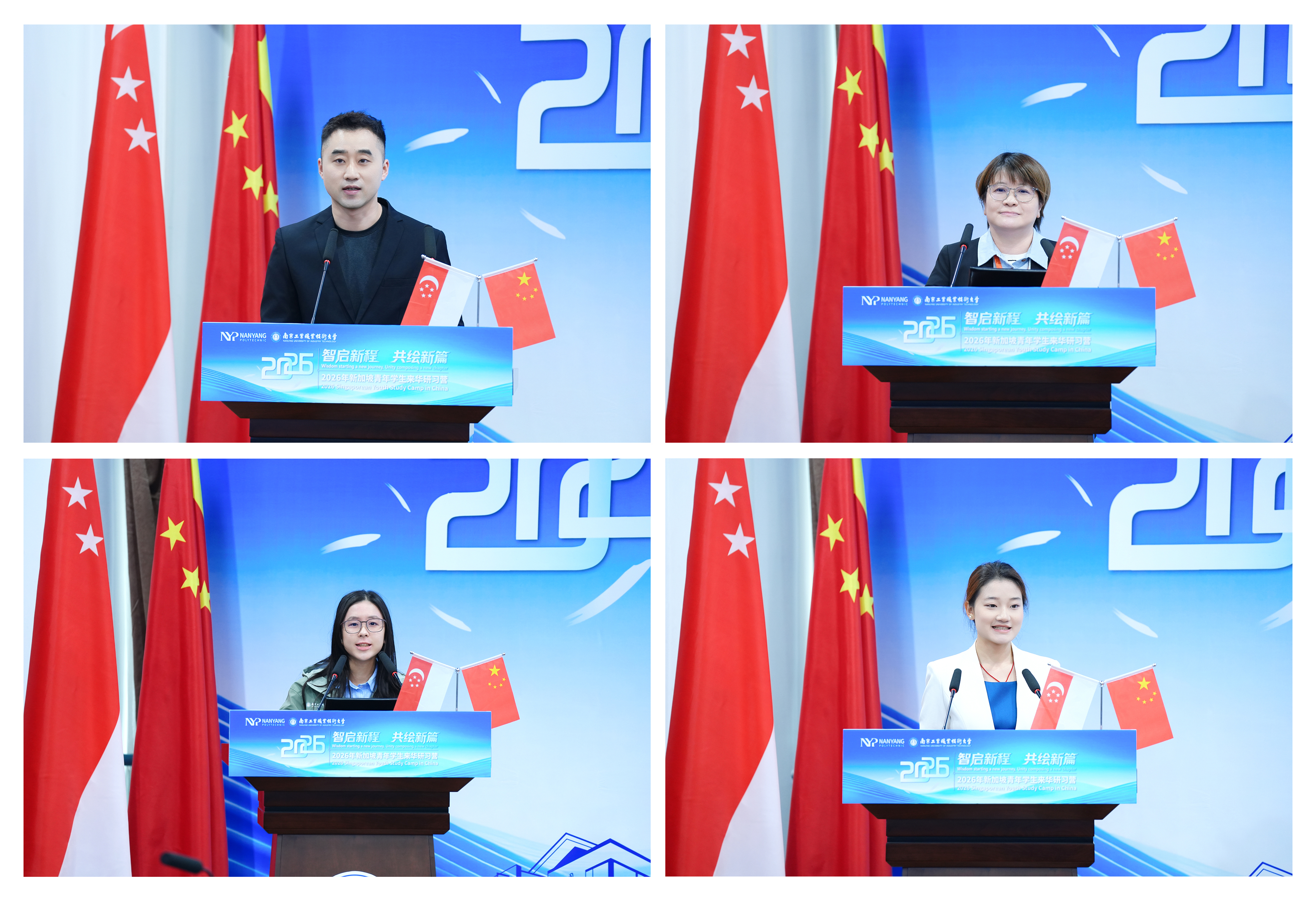 师生代表发言环节,新加坡南洋理工学院教师代表陈淑娜(Alice Tan)表示,中新两国青年在学术研究、创新实践及文化传承等方面各具独特视角,期待两校师生在学术与文化的互动中不断增进理解、凝聚共识,为未来两校深化合作搭建坚实桥梁。新加坡南洋理工学院学生代表蔡诗佳(Phoebe Chua)表示,非常荣幸能够参加此次研习营活动。此次来华研习既是一次学术上的“取经”之旅,也是一场丰富的文化盛宴,期待与南工同学深入交流、共同进步。我校教师代表黄睿与学生代表徐莹钰在发言中表示,本次研习营为两国师生提供了思想碰撞与智慧交融的宝贵平台,期待在交流中相互启发,在合作中共同成长。