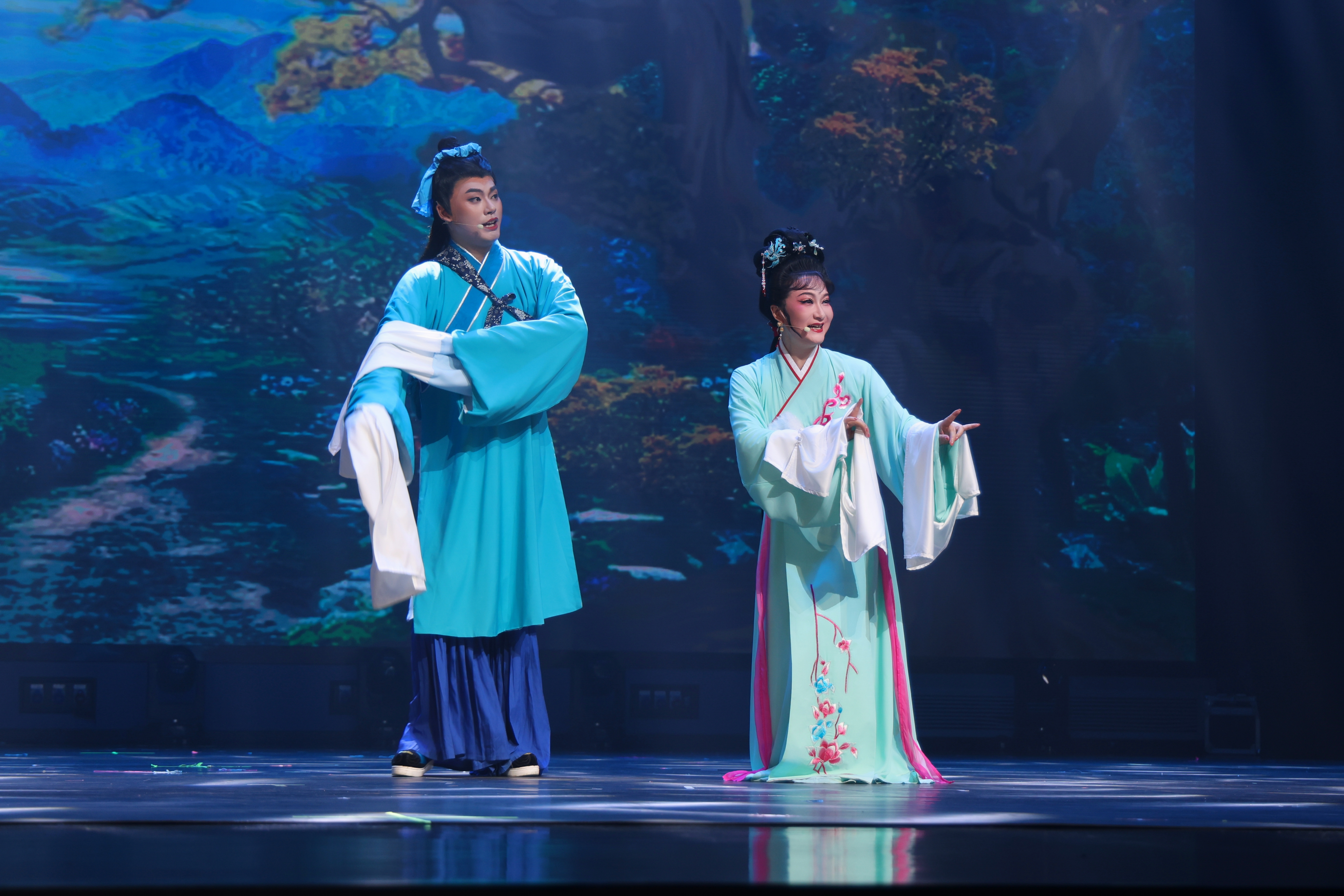 演出在悠扬的民乐声中拉开帷幕。《天仙配》作为黄梅戏经典剧目,以真挚的情感、生动的情节与优美唱腔深受大众喜爱。艺术团演员们身着精致戏服,以扎实功底、传神表演,将董永与七仙女的故事娓娓道来。婉转唱腔、细腻身段、唯美舞美,让在场师生沉浸式感受黄梅戏的艺术魅力,现场掌声与喝彩声不断。
